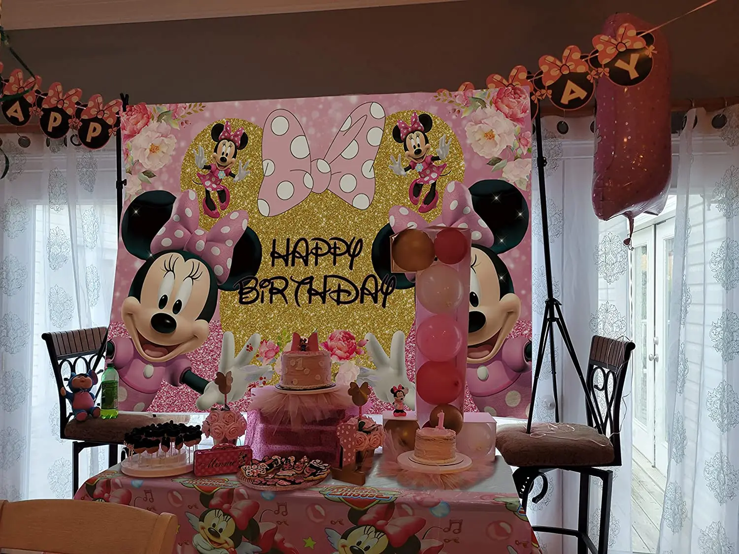 Розовый фон с Минни для девочек, украшения для дня рождения, мультяшный фон с Минни для фотосъемки на день рождения, баннер для девочек