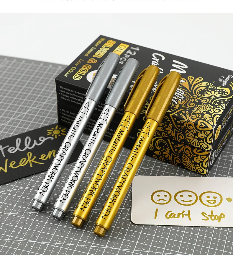 Металлический маркер, водонепроницаемые перманентные ручки для рисования золотого и серебряного цветов для творчества, эпоксидная смола, художественные изделия, товары для студентов