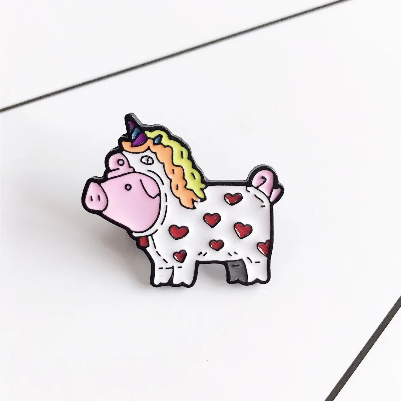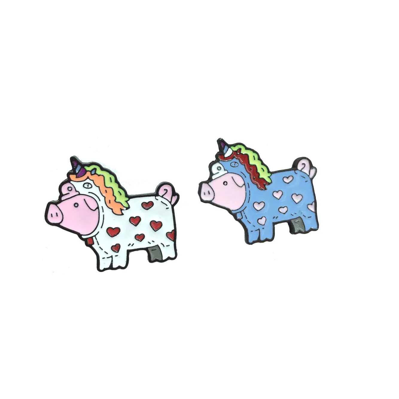 Мультяшные животные Броши пони Единорог свинка эмалевые булавки преобразование одежды воротник лацкан булавка сумка металлические значки ювелирные изделия для друзей
