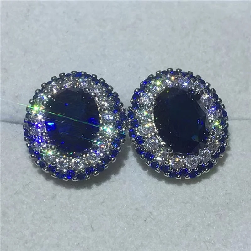 серьги 2022 тренд серьги гвоздики серьги Роскошные женские серьги с бриллиантами круглые сапфировые Кристаллы из серебра 925 пробы Серьги для обучения на День матери подарок ювелирные изделия Y2K аксессуары серьги