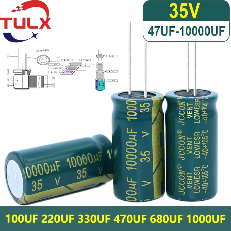 100-5 шт., электролитический конденсатор 35 в 10000 мкФ 6800 мкФ 4700 мкФ 3300 мкФ Ф 2200 мкФ 1500 мкмкФ 1000 мкФ 680 мкФ Ф 470 мкФ 330 мкФ конденсатор