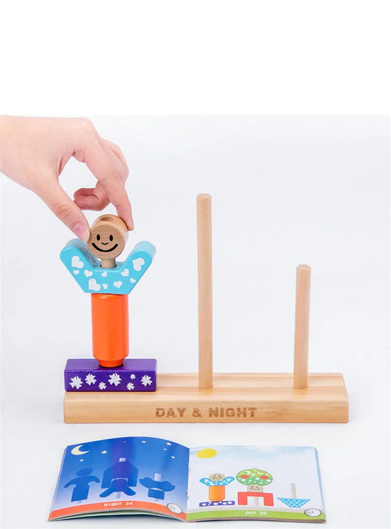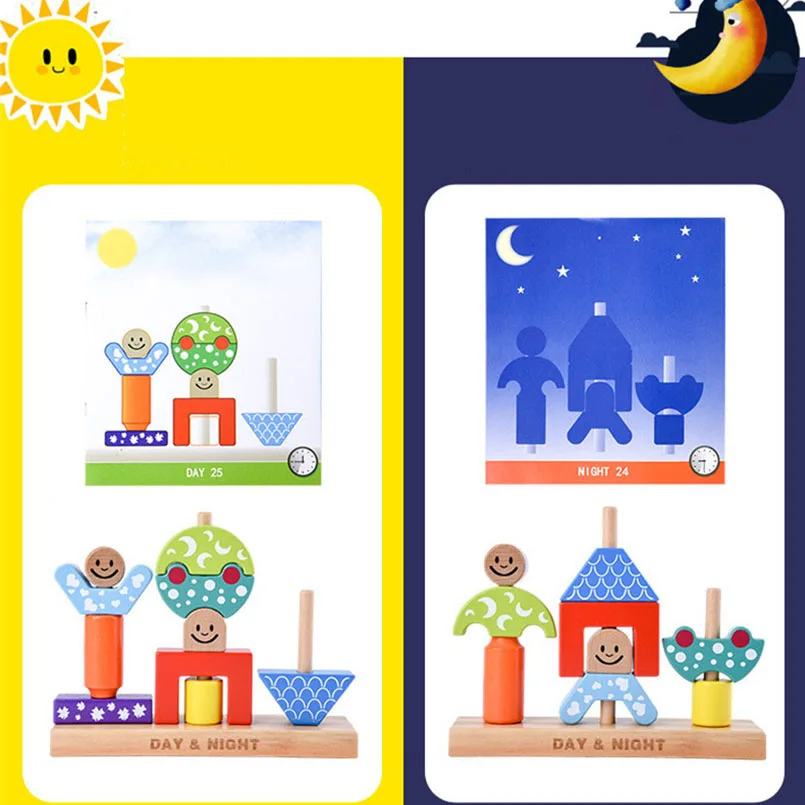 Монтессори день и ночь столб блоки творческие раннего образования Деревянные игрушки родитель-ребенок Взаимодействие игры Форма строительный блок
