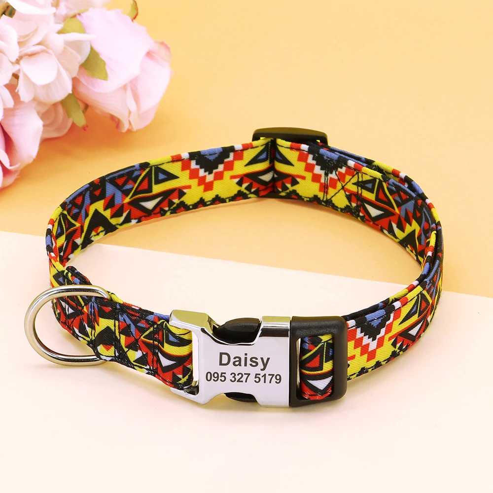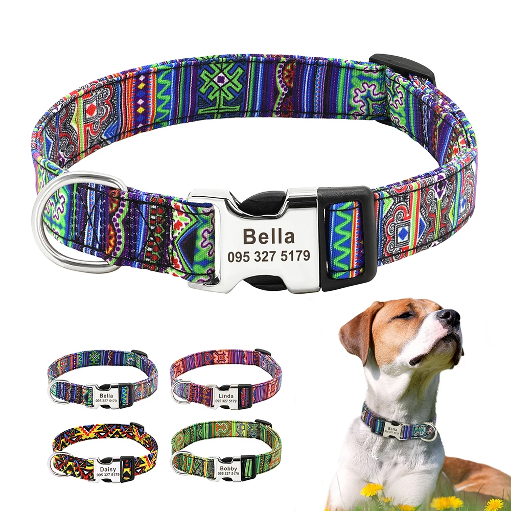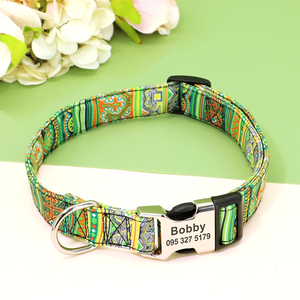 Индивидуальный ошейник для собак с индийским принтом, персонализированный ошейник для домашних питомцев, нейлоновые ошейники для щенков, ошейники для собак с бесплатной гравировкой имени для маленьких, средних и больших собак