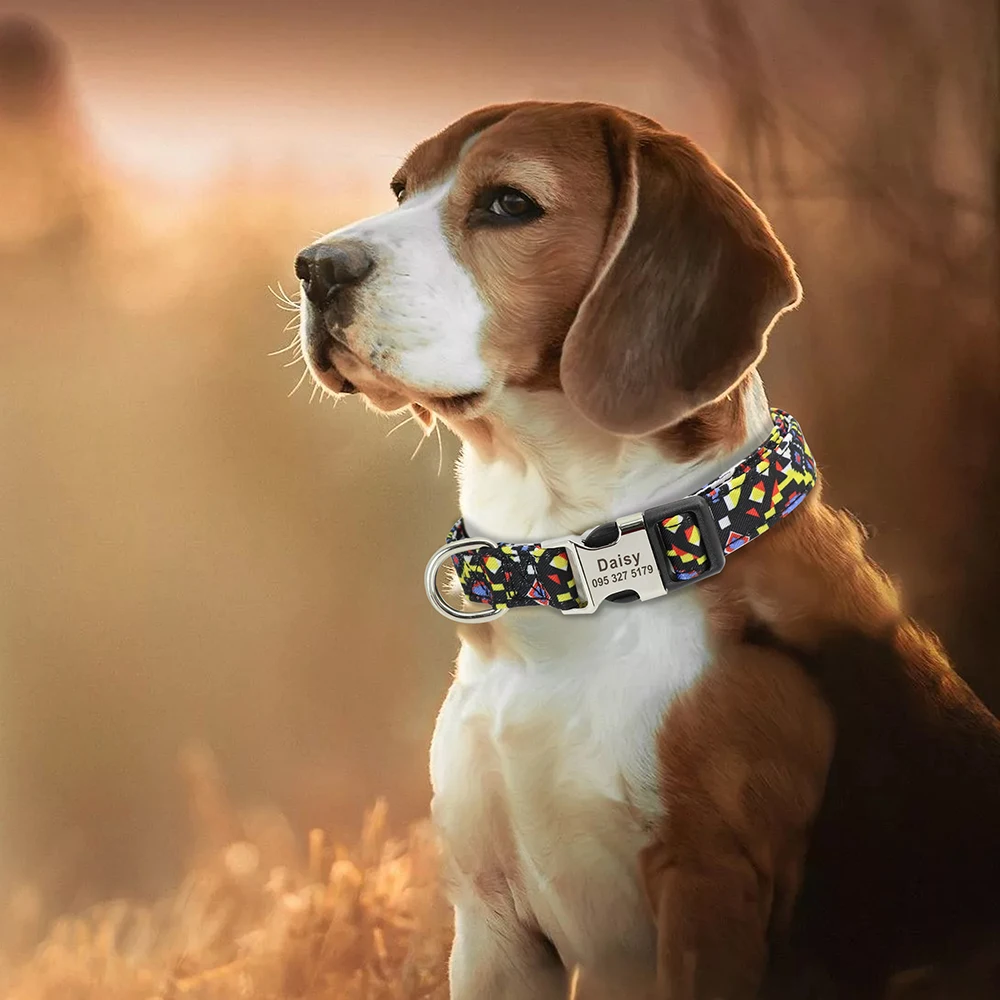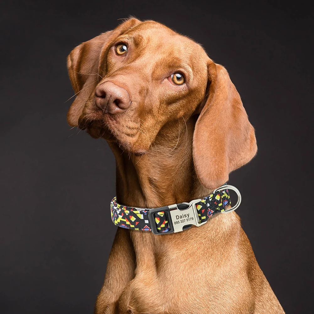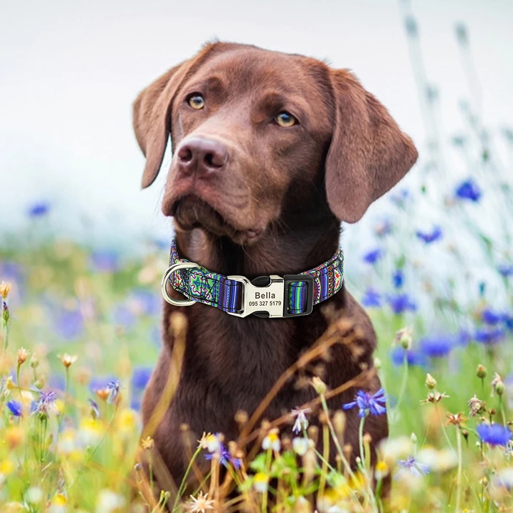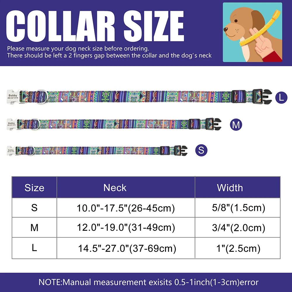 Индивидуальный ошейник для собак с индийским принтом, персонализированный ошейник для домашних питомцев, нейлоновые ошейники для щенков, ошейники для собак с бесплатной гравировкой имени для маленьких, средних и больших собак