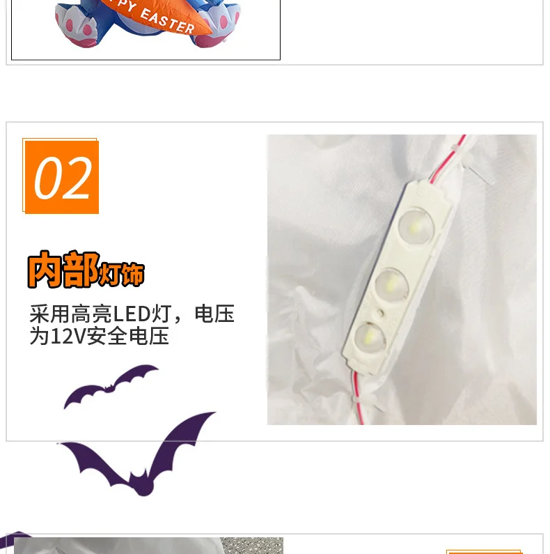 Пасхальный надувной кролик со светодиодный светильник кой, 150 см, ...