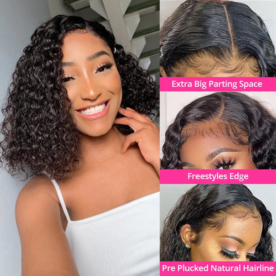 Парик водяная волна короткий парик Боб 13x4 прозрачный кружевной фронтальный парик для женщин бразильский глубокий кудрявый парик на сетке с детскими волосами