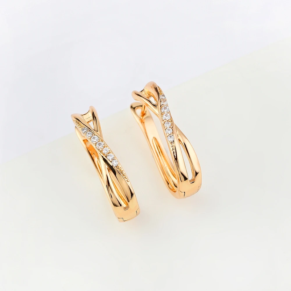 Женские медные серьги из розового золота 585 пробы с кристаллами