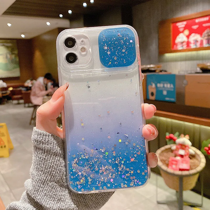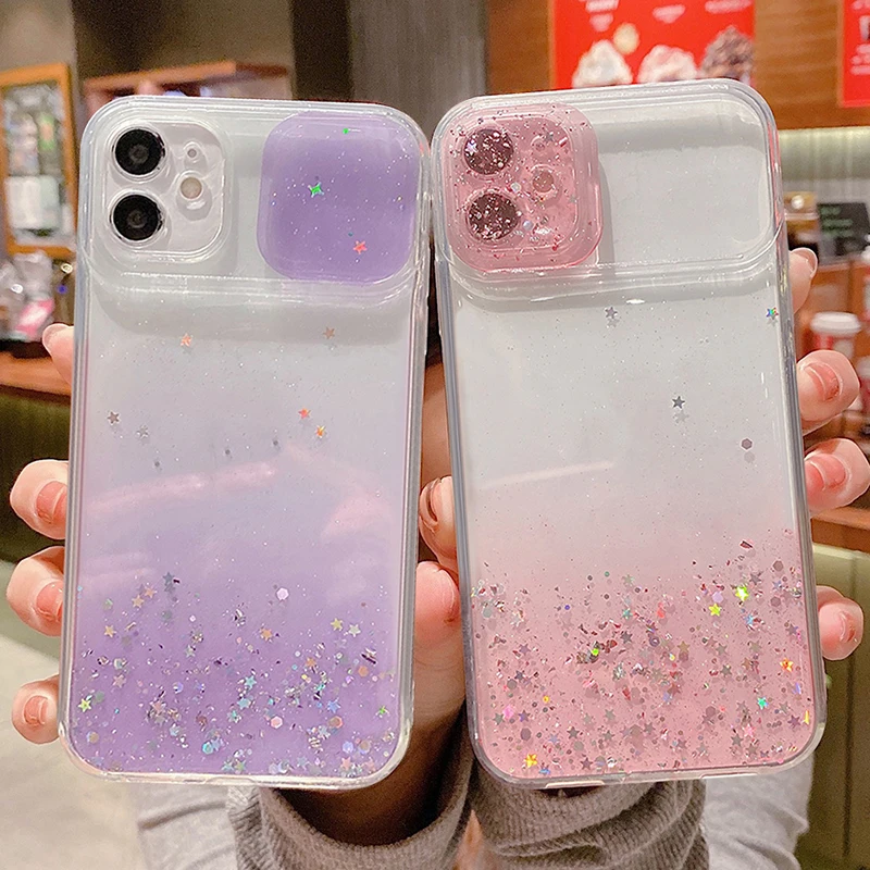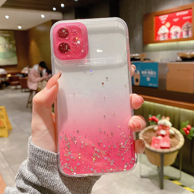 Модный прозрачный чехол с градиентом и блестками для iPhone 13, 12, 11 Pro Max, XR, XS, 7, 8 Plus, защитный чехол-накладка с замкнутой камерой