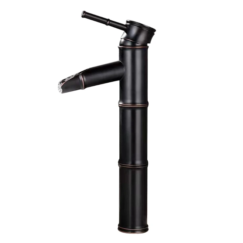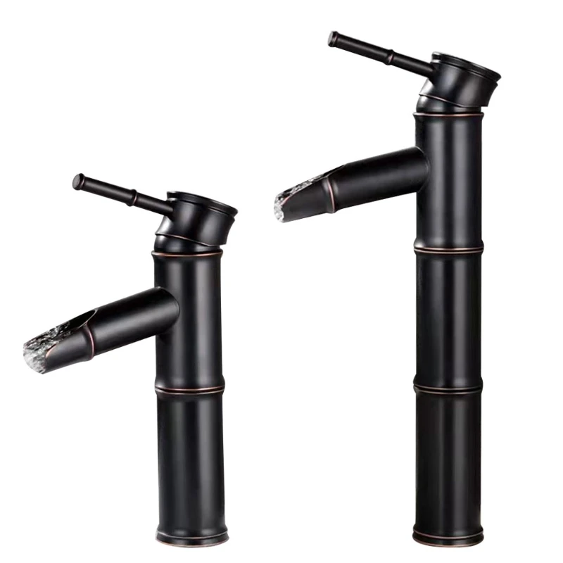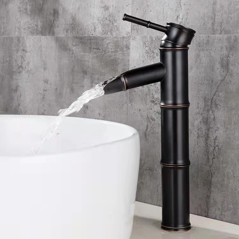 Водопад, смеситель для раковины в ванной комнате, смеситель холоднойгорячей воды, смеситель для раковины, антикоррозийный медный смеситель для раковины, элегантный и ретро бамбуковый дизайн, 85WC