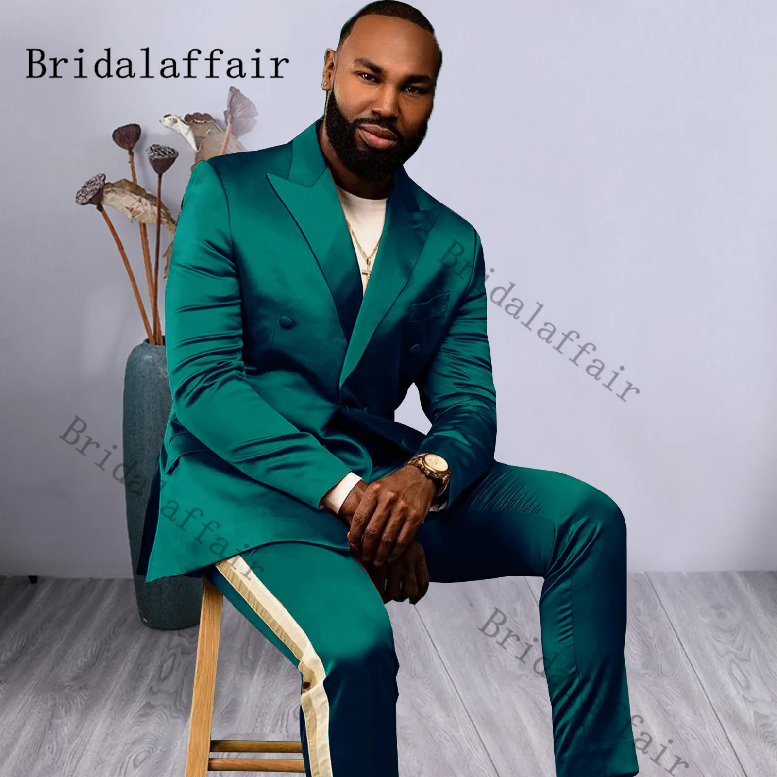Блестящий смокинг Bridalaffair новейшего дизайна зеленого павлина 2022, облегающий пиджак и брюки, вечернее мужское платье, двубортный свадебный костюм