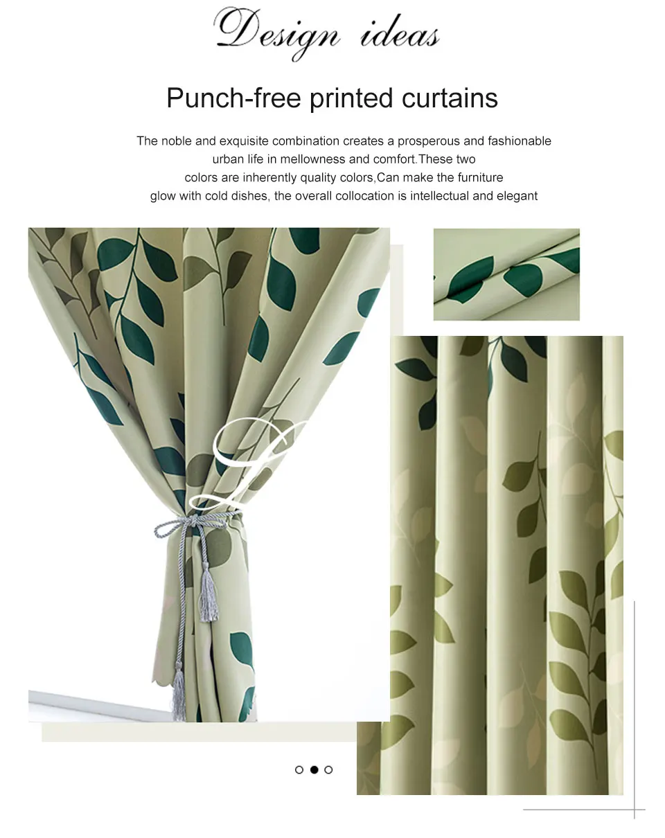 Затемняющие шторы для гостиной, спальни, с принтом листьев