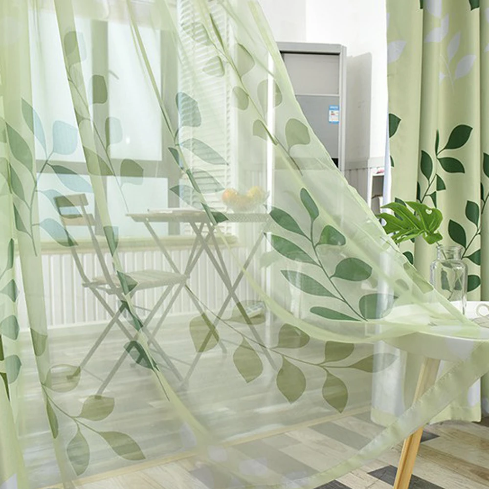 Полупрозрачные шторы MRTREEES, тюлевые шторы с зелеными листьями дл...