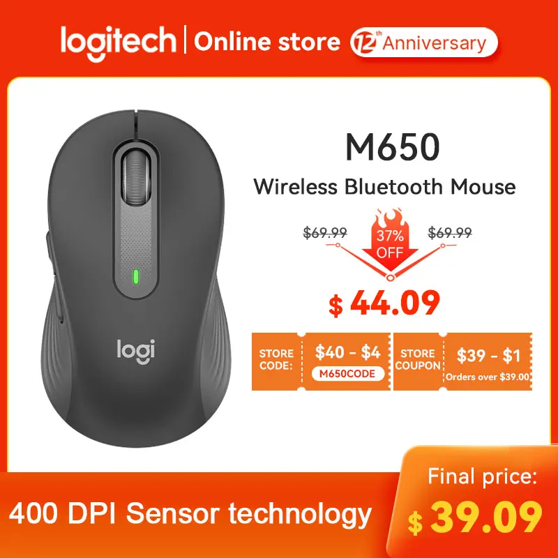 Подпись M650Высота: 107,19 ммШирина: 61,80 ммГлубина: 37,8 ммВес: 101,2 гПодпись M650 LВысота: 118,19 ммШирина: 65,63 ммГлубина: 41,52 ммВес: 111,2 гТехнические характеристикиСенсорная технологияТехнология датчика: усовершенствованное оптическое отслеживание LogitechНоминальное значение: 400 точек/дюймМаксимальное значение: до 2000КнопкиКоличество кнопок: 5 (левый/правый щелчок, назад/вперед, колесо прокрутки со средним щелчком)БатареяТип батареи: 1 х АА батарея (в комплекте)Logi болт USB приемник Срок службы батареи: до 24 месяцев 1 диапазон может варьироваться в зависимости от использования и использования компьютера.Срок службы батареи Bluetooth: до 20 месяцев 2 диапазона могут отличаться в зависимости от использования и использования компьютера.Тип соединения