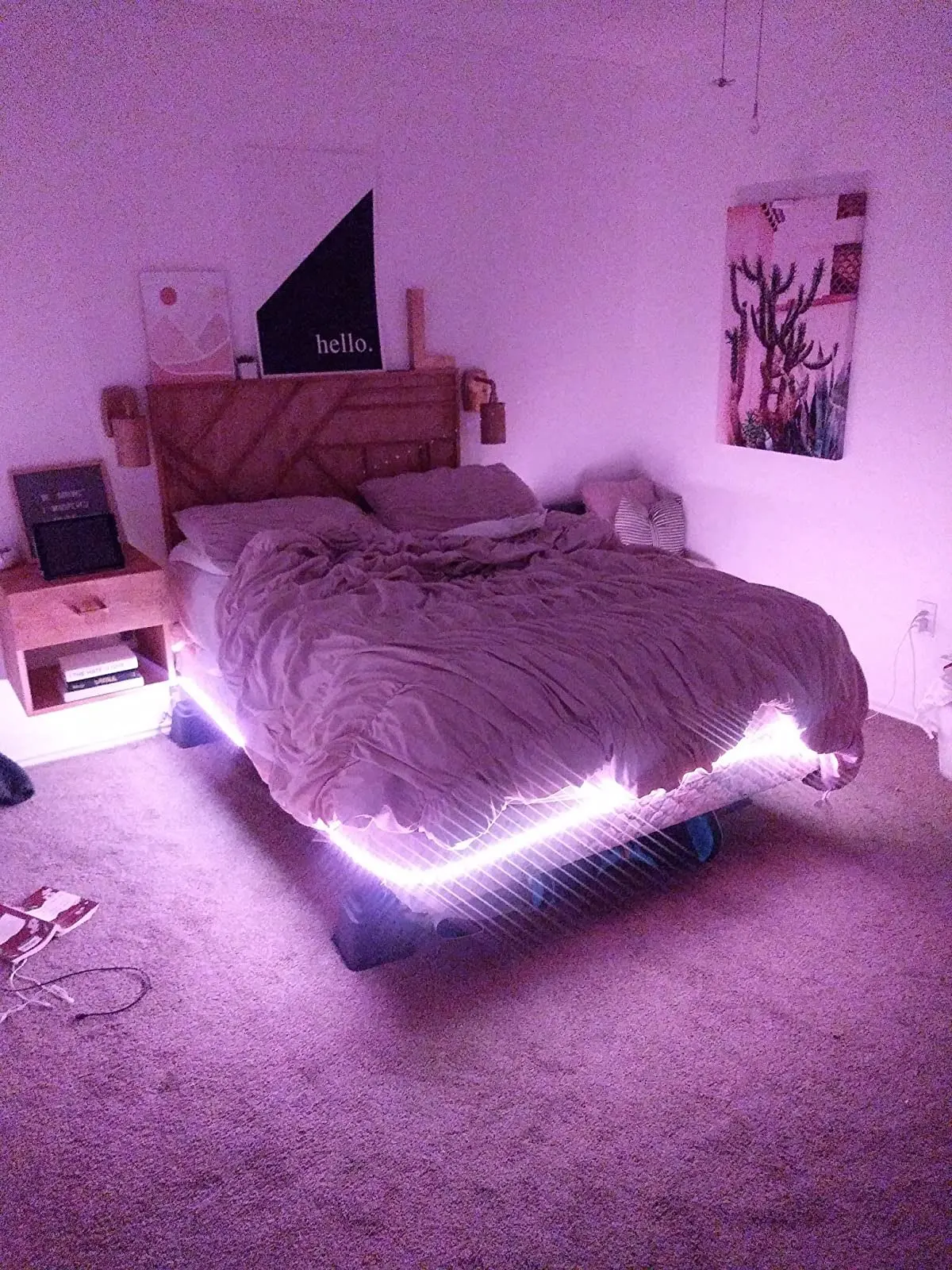 Я не был уверен, насколько хорошо это будет работать, но был приятно удивлен. Я купил для подсветки изголовья на заказ. Светодиоды были приклеены непосредственно к необработанным сосновым доскам. Клей действительно сильный и не имеет никаких проблем с приклеиванием к дереву. Мои дети любят менять цвет. Существует множество настроек яркости. Я пробовал Пользовательские настройки и, вероятно, не буду. Стандартные цвета подходят для моих нужд. У меня было это уже 4 месяца без проблем.