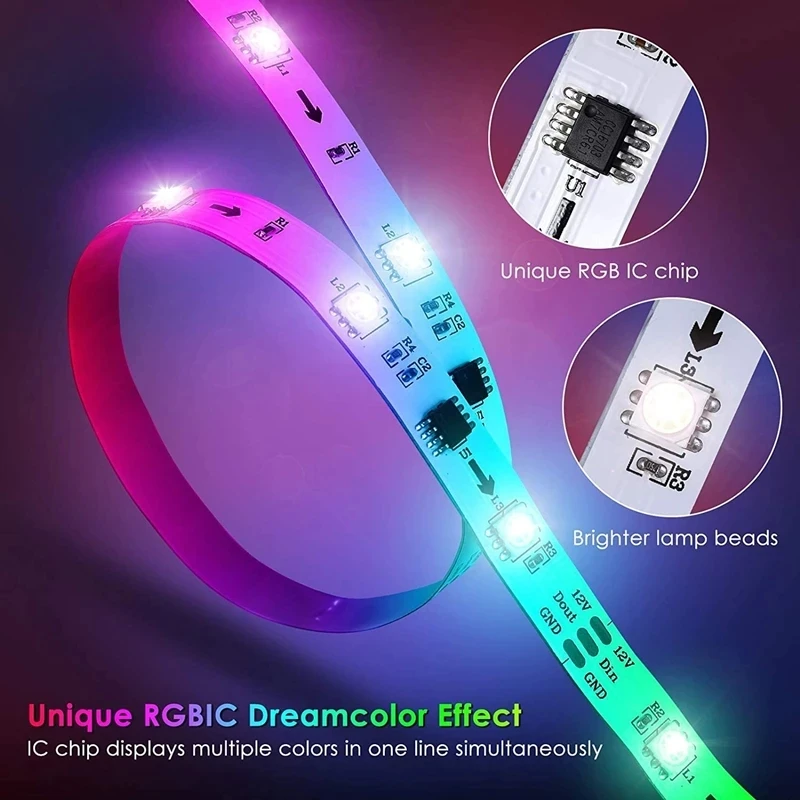 Светодиодная лента RGBIC WS2812B, RGB 5050, USB, Bluetooth, 5 в пост. Тока, 1-30 м, индивидуально адресуемый гибкий диод для телевизора, компьютера, спальни