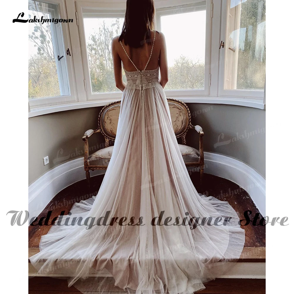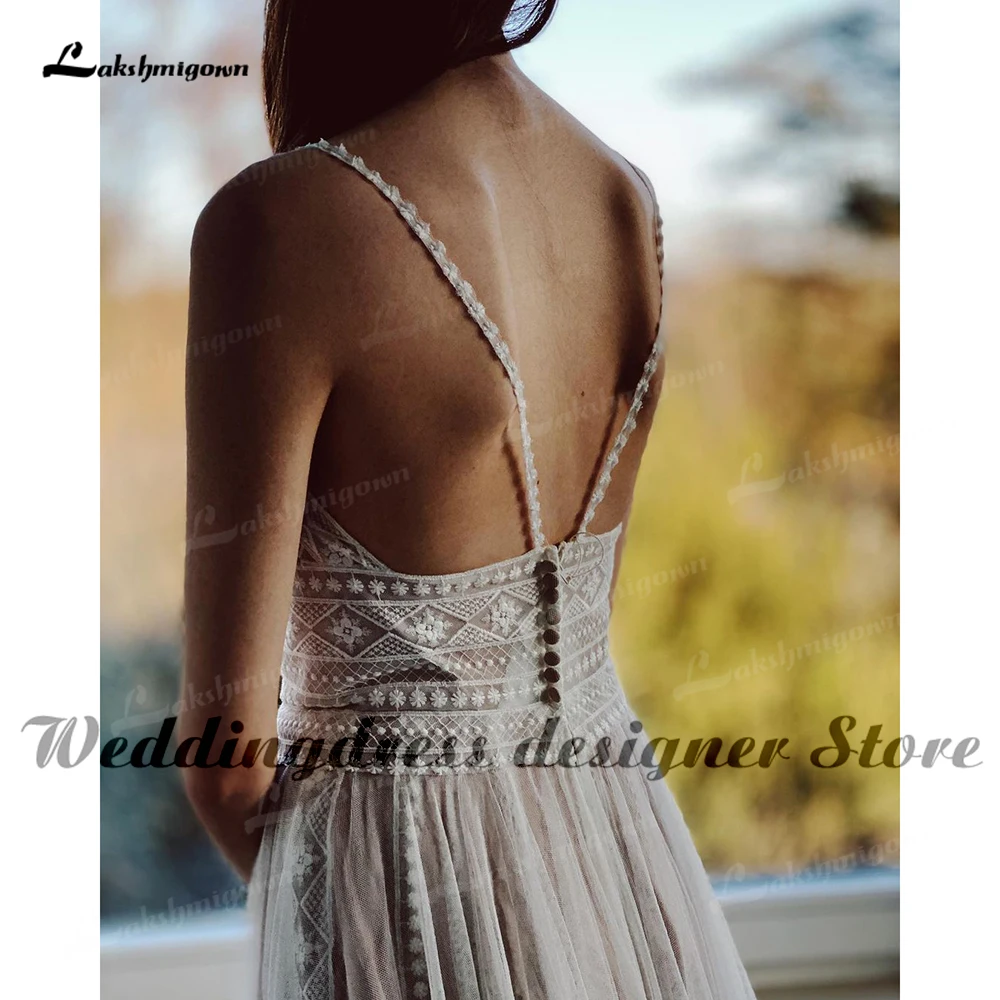 Женское кружевное свадебное платье, привлекательные фатиновые Свадебные платья на бретелях-спагетти с V-образным вырезом для невесты, 2022