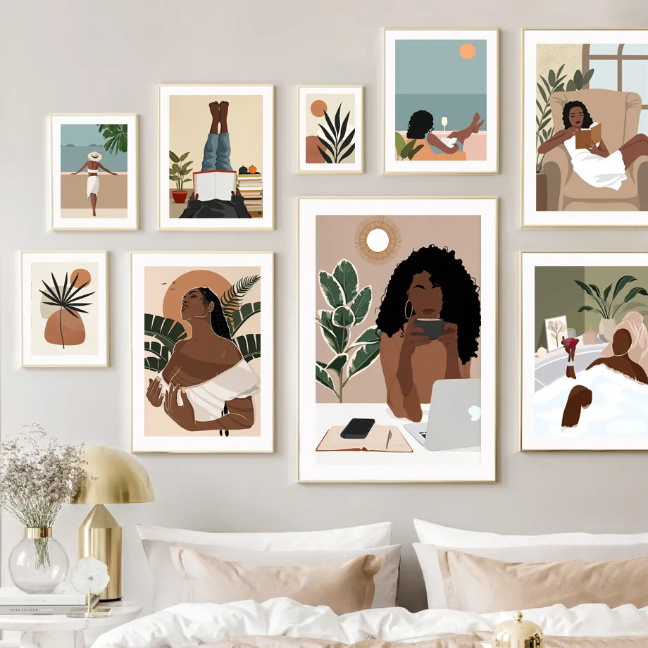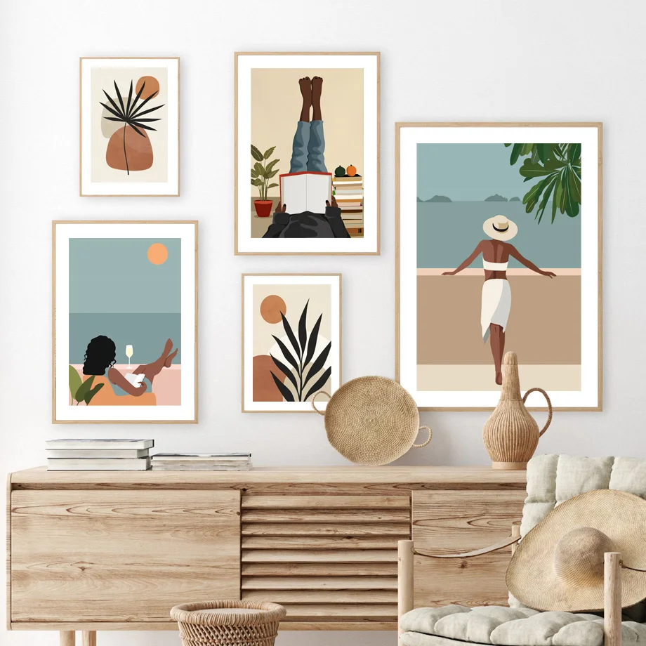 Абстрактная тропическая пляжная девушка книга линии Бохо настенная ...