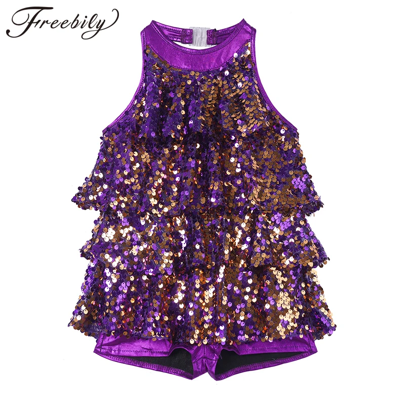 Детское балетное танцевальное платье с лямкой на шее, блестящими пайетками, гимнастическое трико для девочек, вечерние костюмы для сцены, джаза, латинских танцев