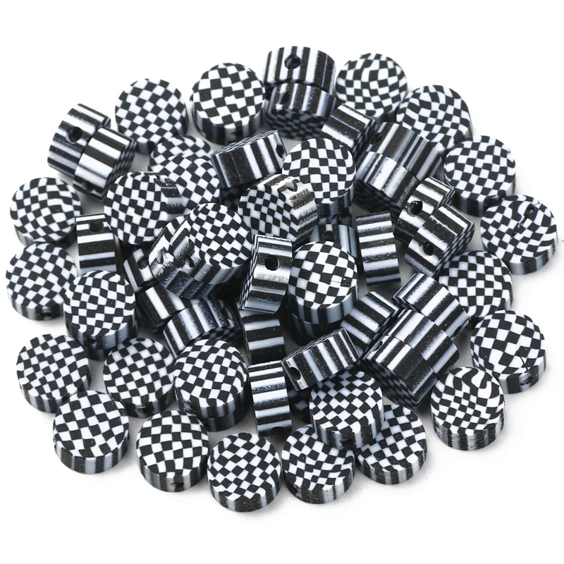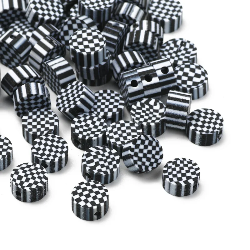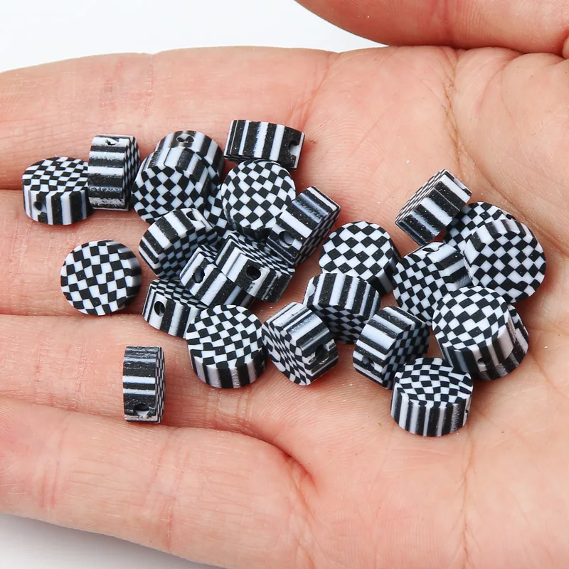 Круглые черно-белые клетчатые бусины из полимерной глины, бусины с отверстием для ювелирных изделий, аксессуары