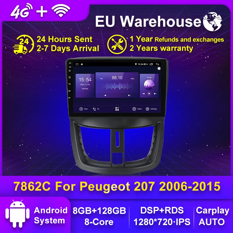8G + 128G Android 11 4G для PEUGEOT 207 2006 - 2015 автомобильный Радио Мультимедиа Видео плеер навигация GPS 2 din dvd DSP RDS