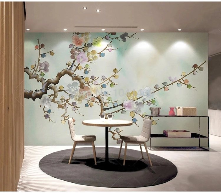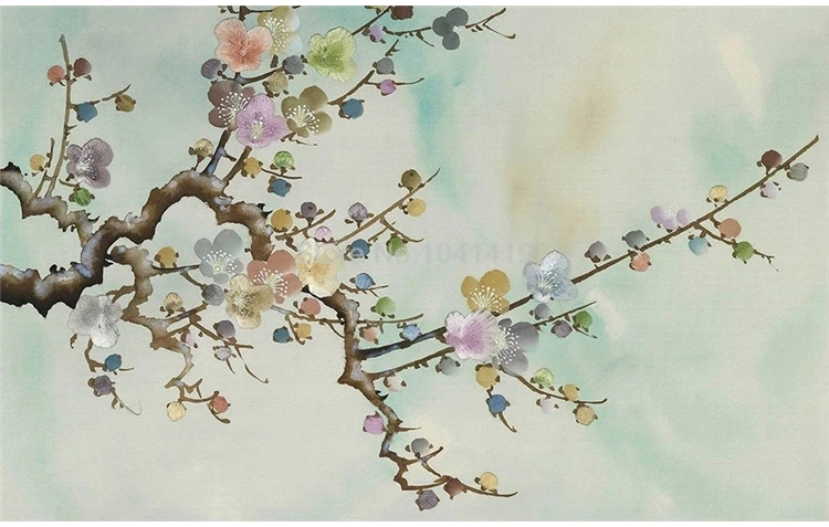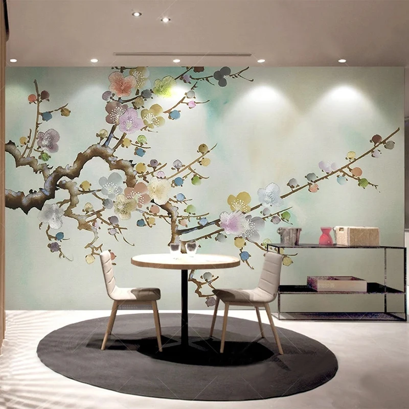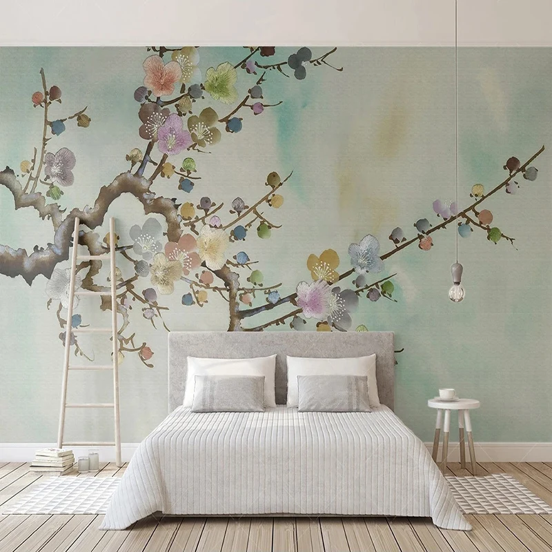 Пользовательские фото обои китайский стиль ручная роспись красочные чернила цветок сливы росписи гостиной ТВ фон Настенный декор обои