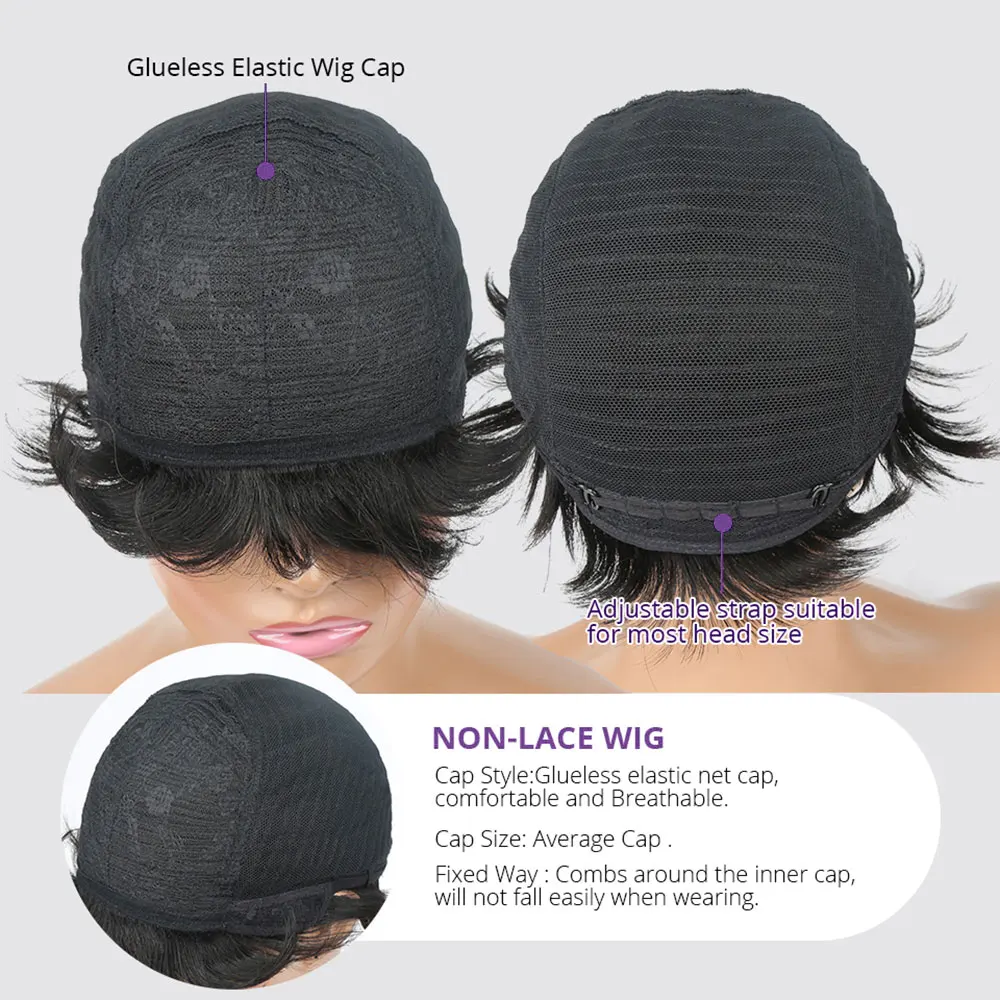 Парик с бахромой, человеческие волосы, короткие волосы, парик из ер...