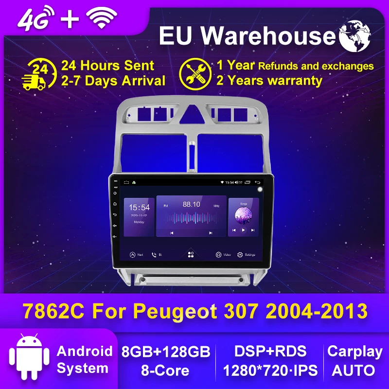 8G + 128G IPS RDS Android 11 AI Голосовое управление Авто Радио для Peugeot 307 SW 2002-2013 Мультимедиа GPS навигация поддержка DAB