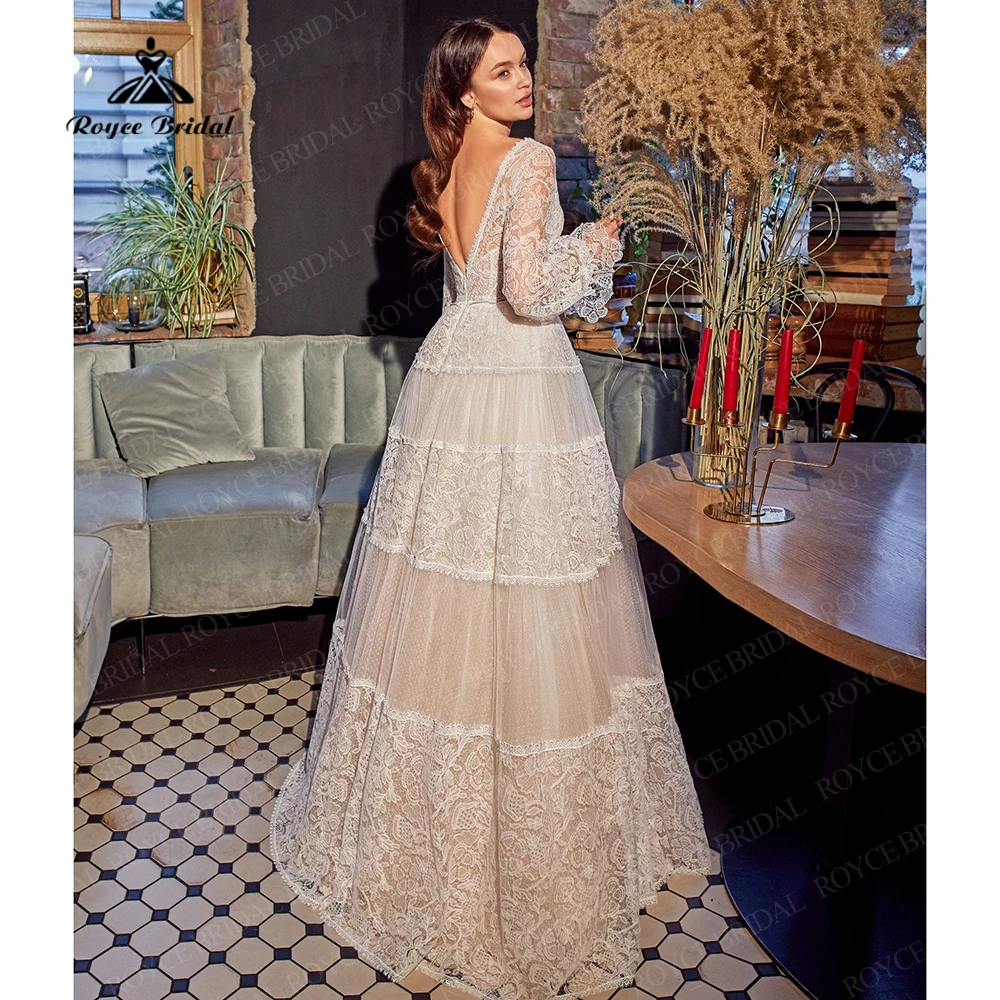 Свадебное платье принцессы с длинными рукавами 2022, кружевное бальное платье с открытой спиной, пышное Тюлевое свадебное платье до пола, женское богемное платье