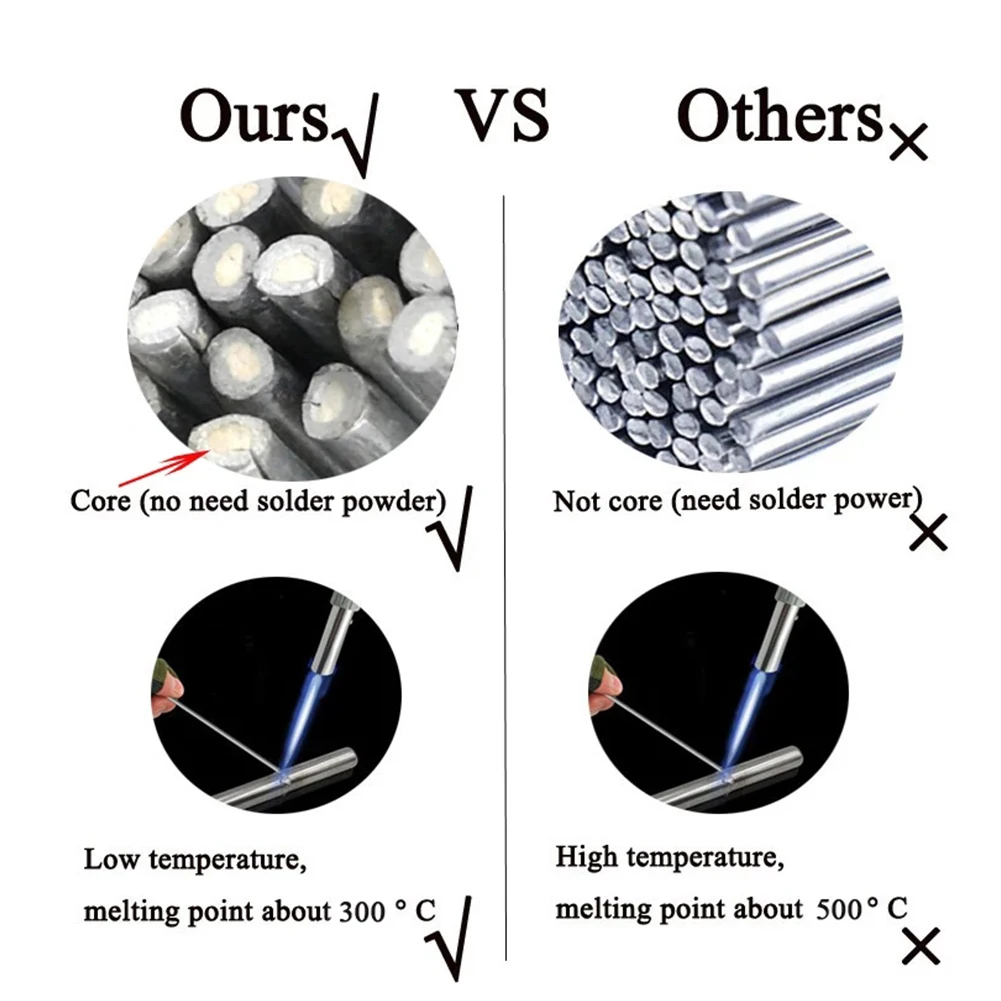 * 3. Материал Премиум: Этот сварочный стержень изготовлен из высококачественного нетоксичного, без запаха и прочного алюминия, имеет низкую температуру плавления и хороший эффект сварки.