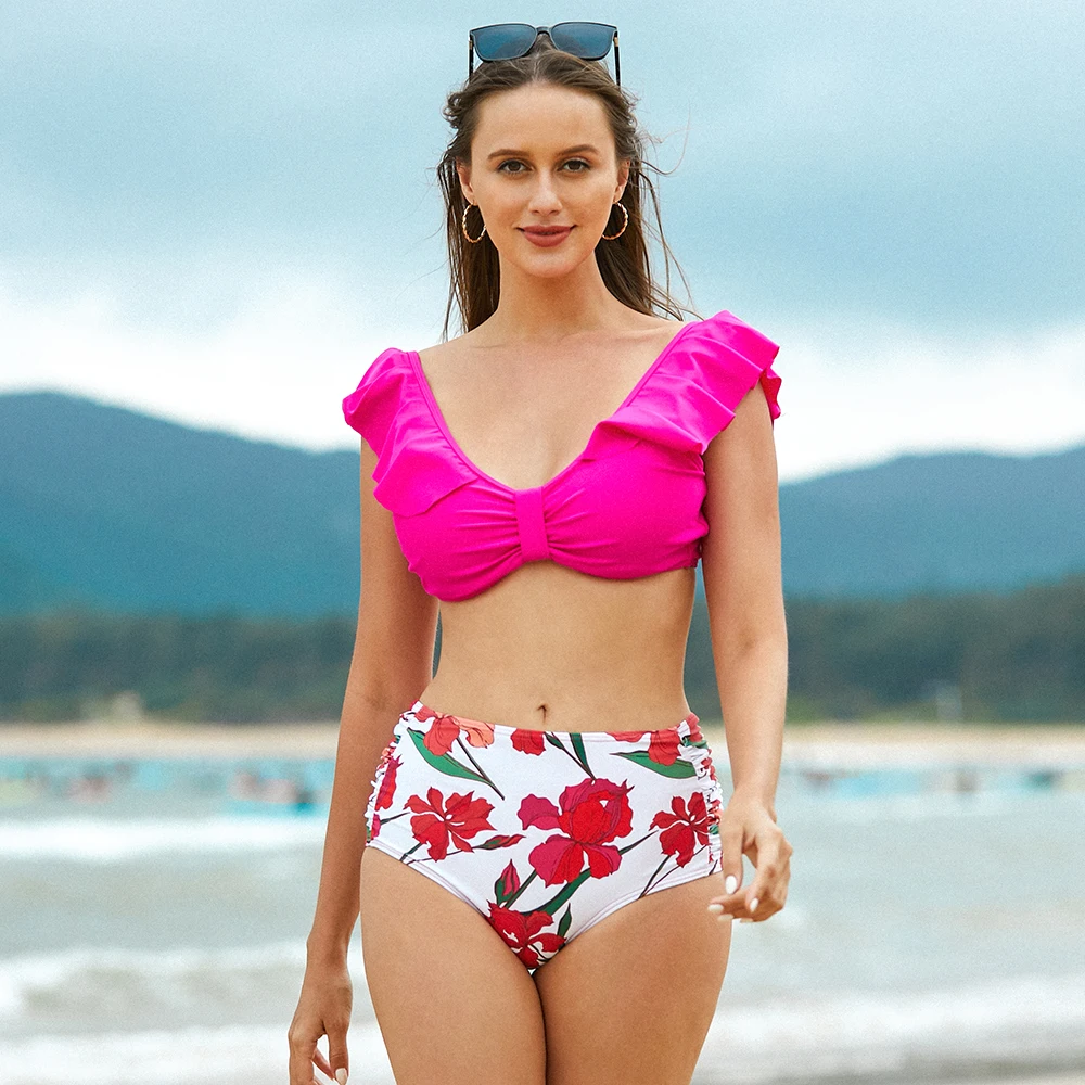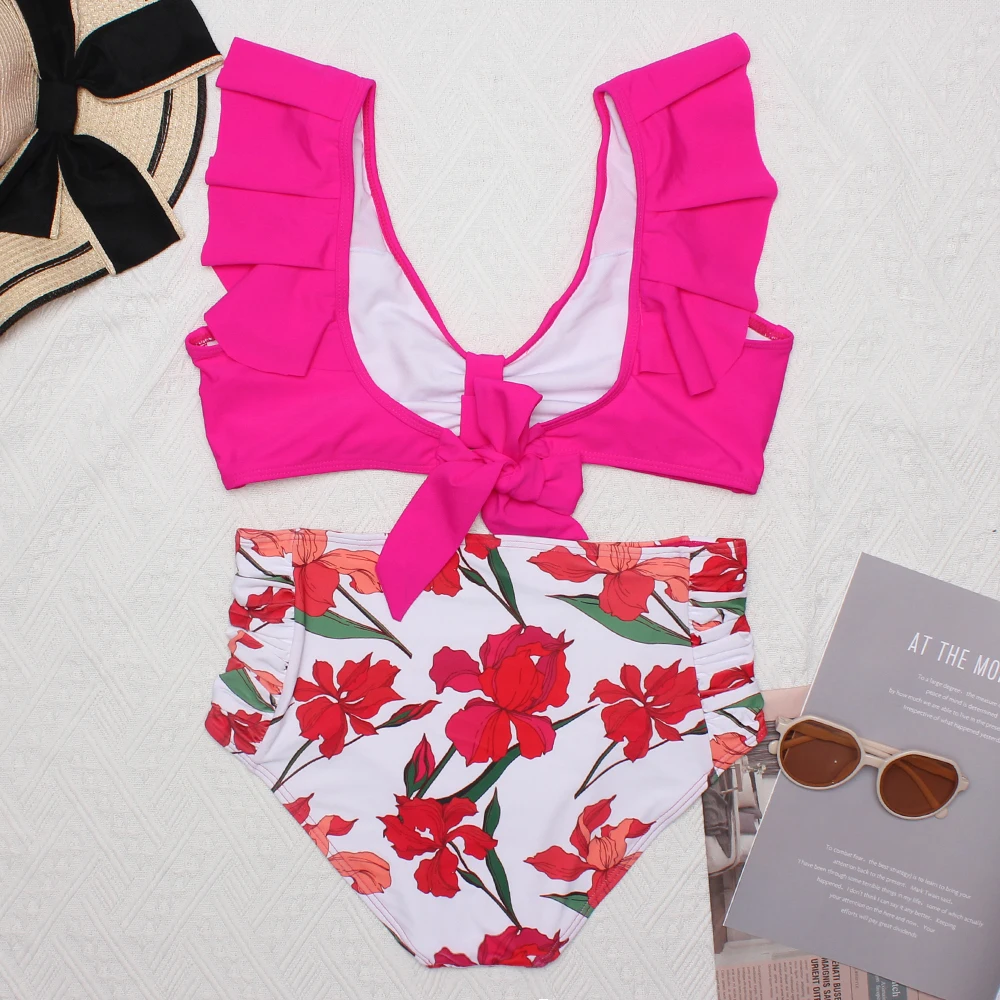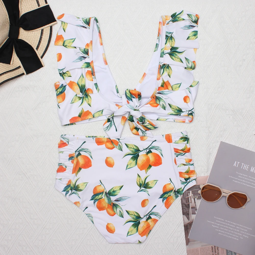 Женский раздельный купальник с принтом, бикини с оборками, купальник с открытой спиной, сексуальная летняя пляжная одежда, купальный костюм с высокой талией, монокини S XXL