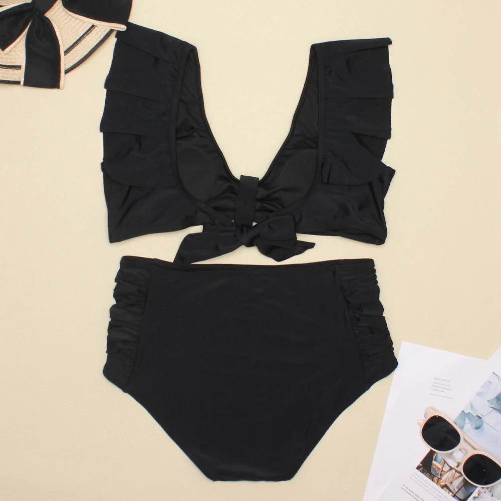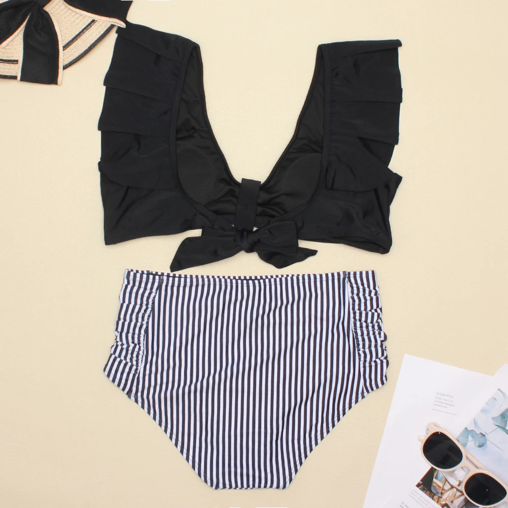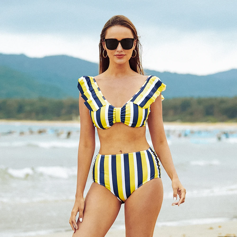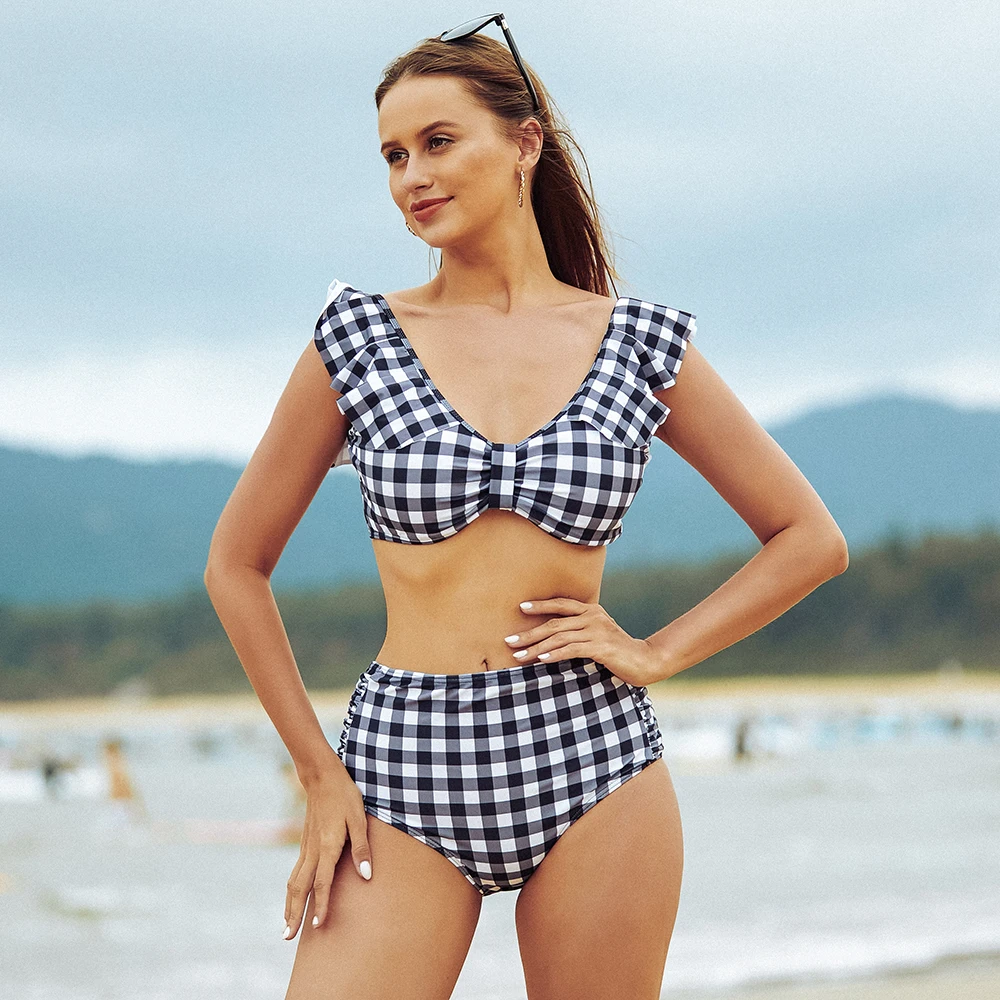 Женский раздельный купальник с принтом, бикини с оборками, купальник с открытой спиной, сексуальная летняя пляжная одежда, купальный костюм с высокой талией, монокини S XXL