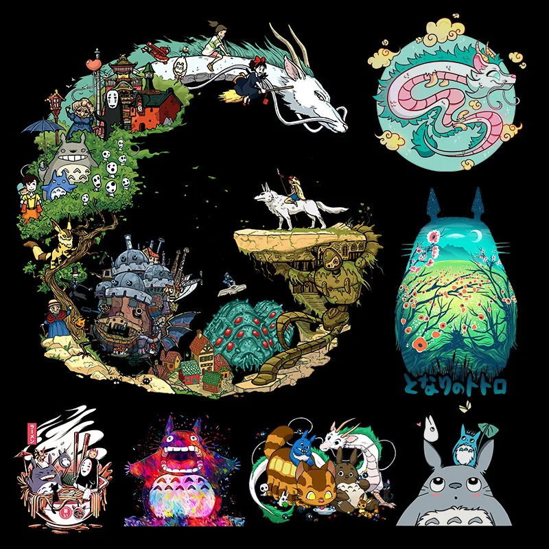 Симпатичные нашивки Тоторо, переводные наклейки с помощью утюга для детской одежды, футболки, человек без лица, дракон, теплопередающие виниловые наклейки, мультяшная аппликация