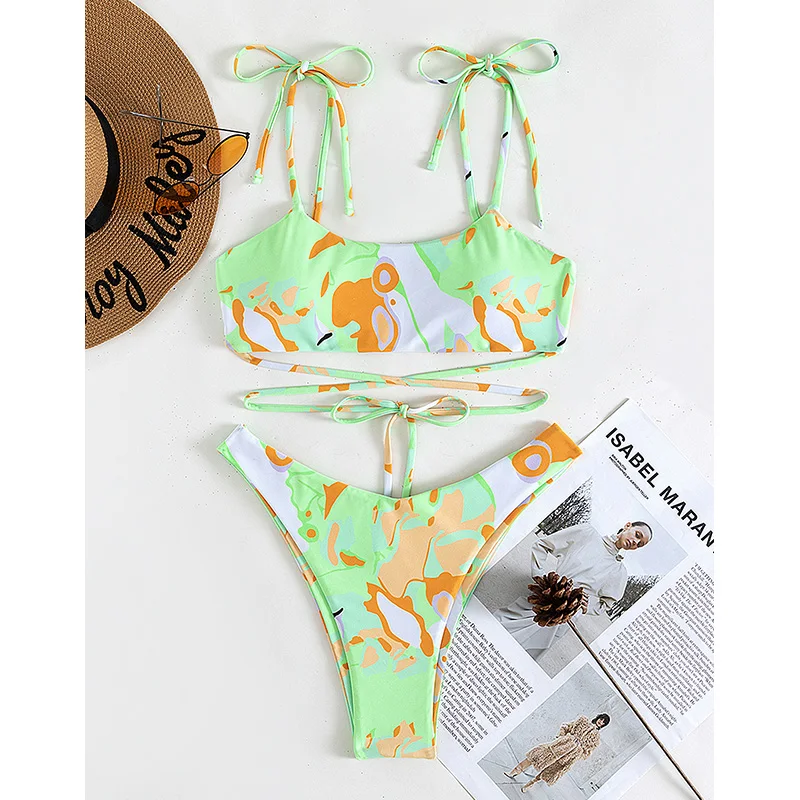 Купальники COOBBU с высоким вырезом, женский купальник пуш-ап, бикини с желтым принтом 2022, сексуальные купальные костюмы, летняя пляжная одежда, новое бикини