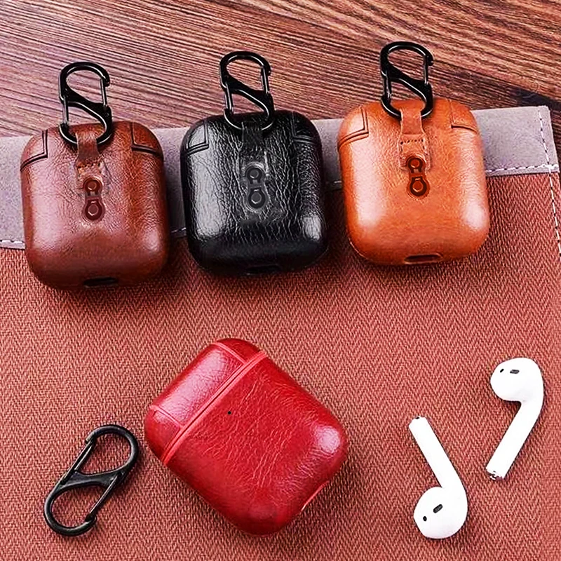 Кожаный защитный чехол для Airpods 2 1, противоударный чехол для наушников с крючком для Apple Airpods, чехол для Airpod