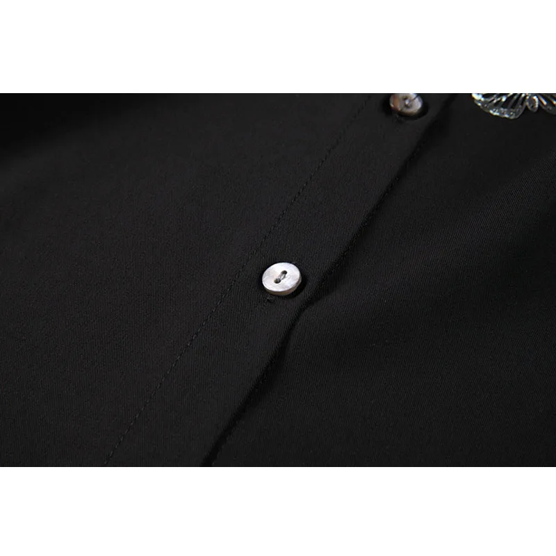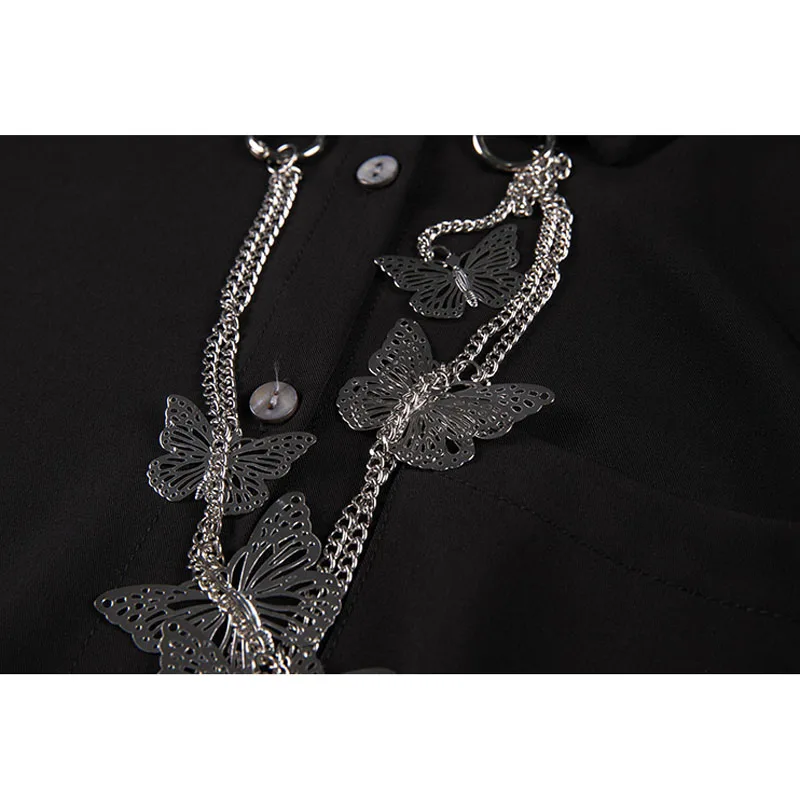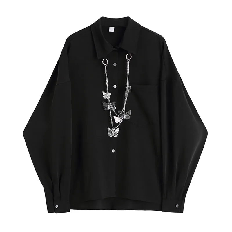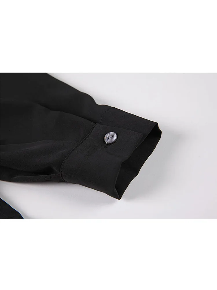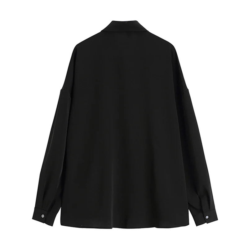 Женская винтажная блузка в готическом стиле, Повседневная Свободная черная рубашка с отложным воротником и длинным рукавом, в стиле бойфренд, Y2K, 2022
