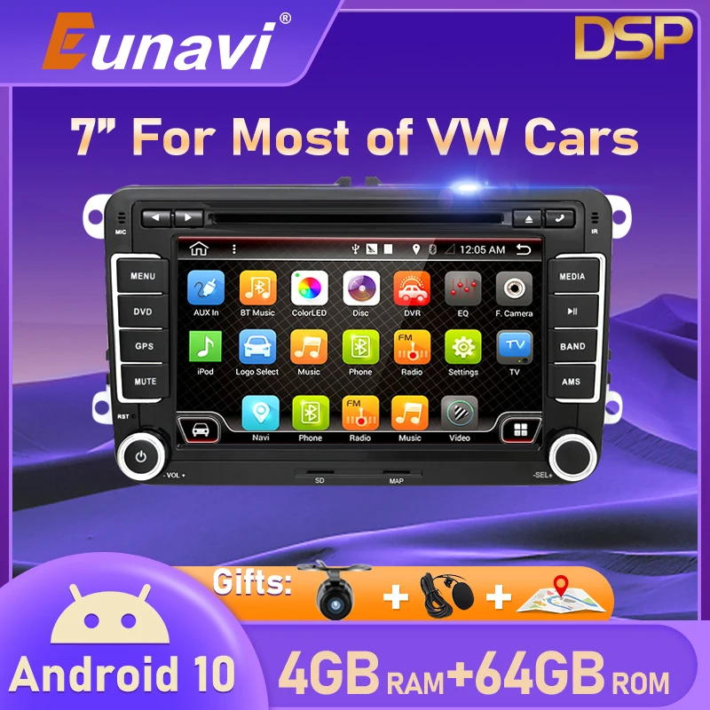 Eunavi 7 дюймов Android 10 автомобильное радио DVD GPS для VW GOLF 5 6 Polo Bora Jetta B6 B7 Passat Tiguan мультимедийный видео плеер 2Din авто