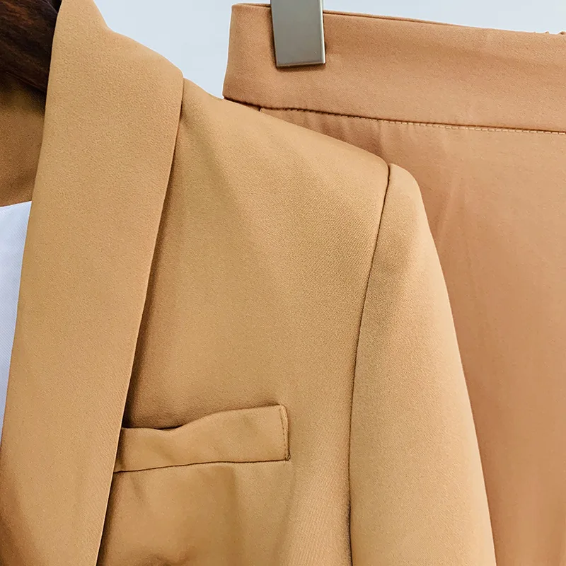 Женский брючный костюм для офиса, классический деловой костюм из двух предметов, двубортный Блейзер на пуговицах и брюки красного и розового цвета, деловые костюмы