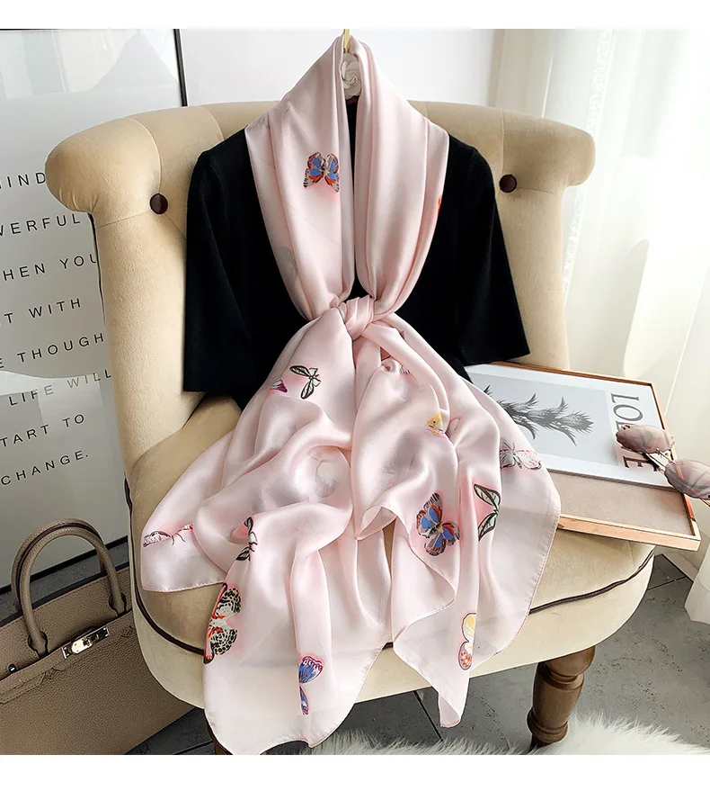 Роскошная брендовая шелковая шаль, шаль, Пашмина, принт бабочки, шарфы, женские пляжные палантины, головной платок
