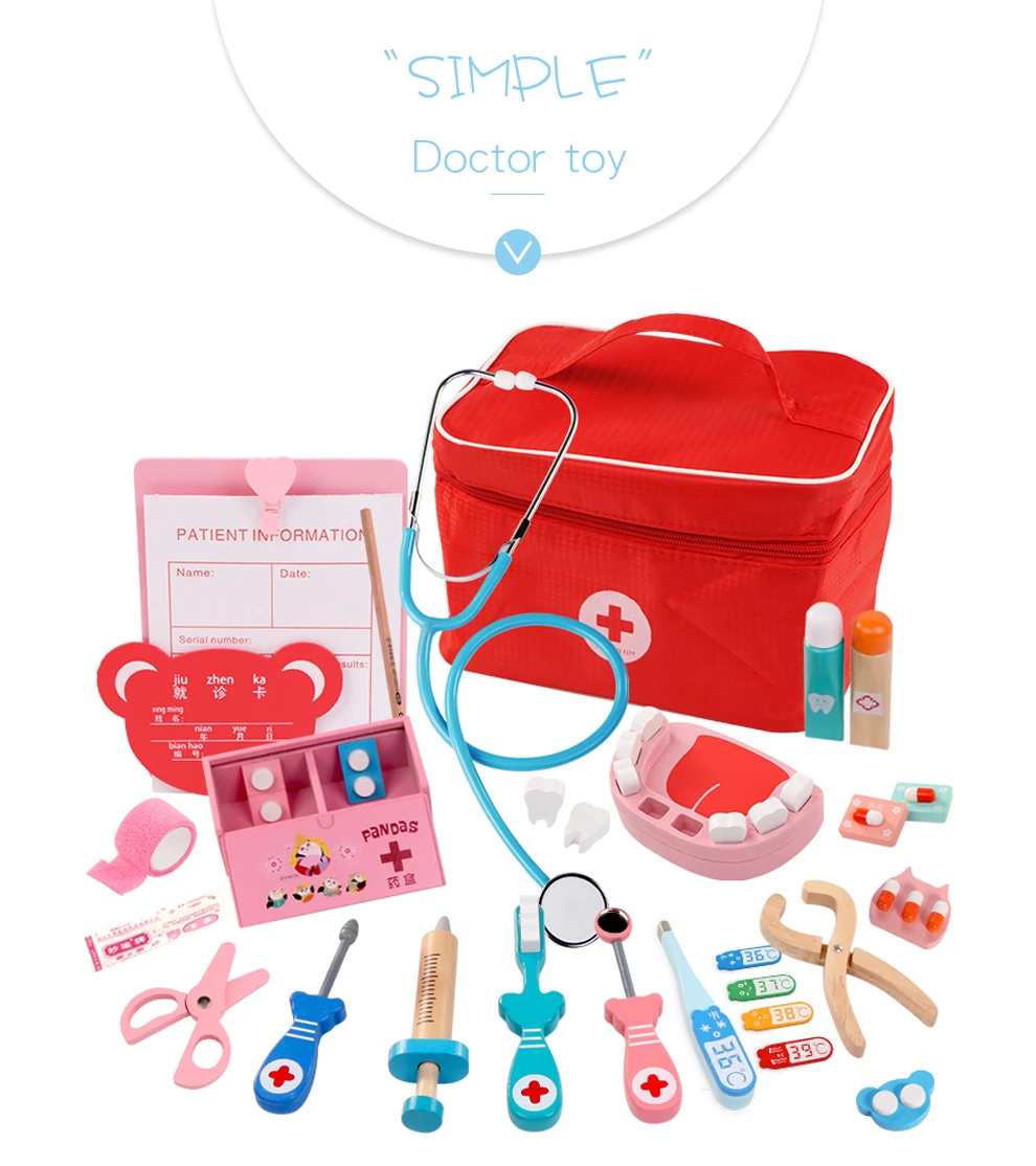 Детская Деревянная Игрушка-врач, модель семьи, врач, медсестра, медицинский комплект, принадлежности для ролевых игр, аптечка