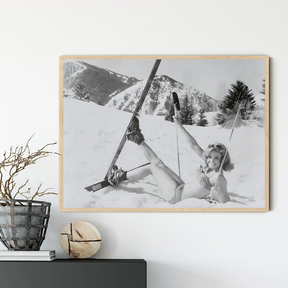 Винтажная фотопечать для катания на лыжах, скейтборде, прыжков, девушек, автомобиль, Картина на холсте, Зимние виды спорта, катание на лыжах, художественный постер, домашний домик, Настенный декор