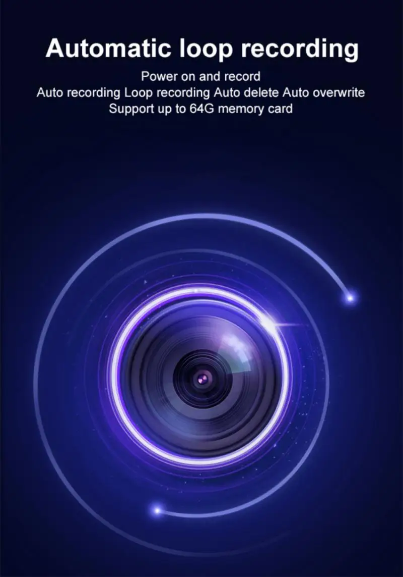 Автоматическая циклическая записьВключение и запись автоматической записи циклической записи автоматическое удаление Автоматическая перезапись Поддержка до 64G карты памяти