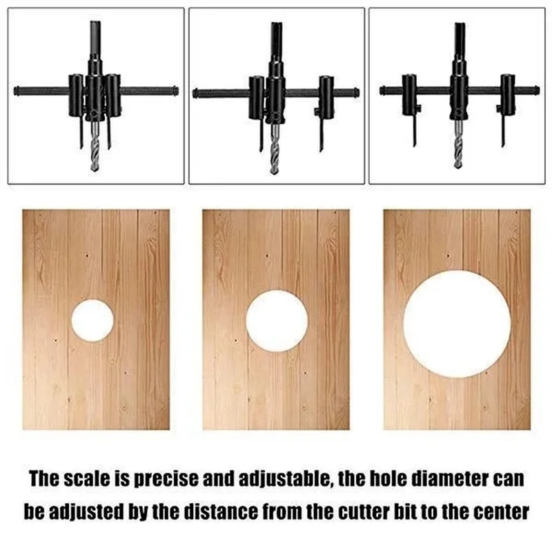 Особенности: -Отверстие Круглое и ровное, гладкое и без заусенцев, а округлость хорошая. -Применимые материалы с деревянной доской, пластиковой доской, фанерой и гипсокартоном и т. д. -Можно использовать снова после полировки. -Широко используется в открывании динамиков DIY, открытии прожектора, отверстии для деревообработки, пластиковом отверстии и т. д. (Рабочая глубина 25 мм) -Диаметр отверстия может регулироваться на расстоянии от наконечника до центра. -Изысканное превосходное широкое применение.