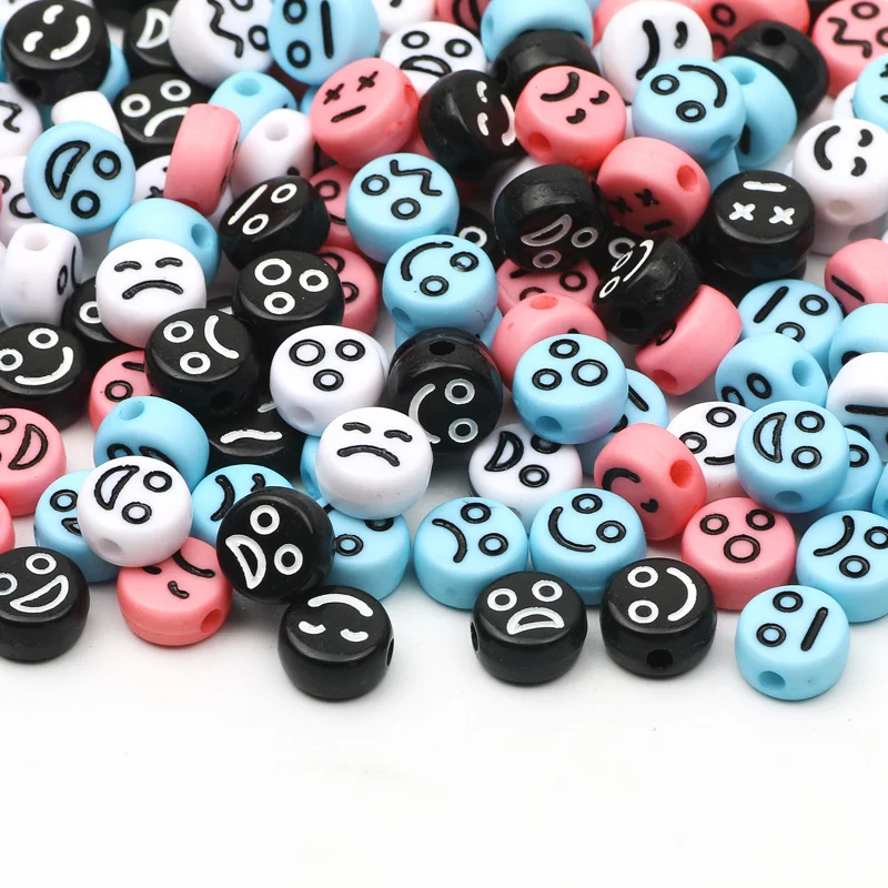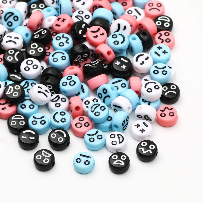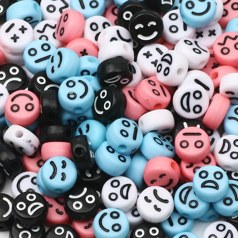 Смешанные акриловые смайлики 4x7 мм, плоские круглые смайлики, распорки, бусины для рукоделия, изготовления ювелирных изделий, браслетов ручной работы сделай сам