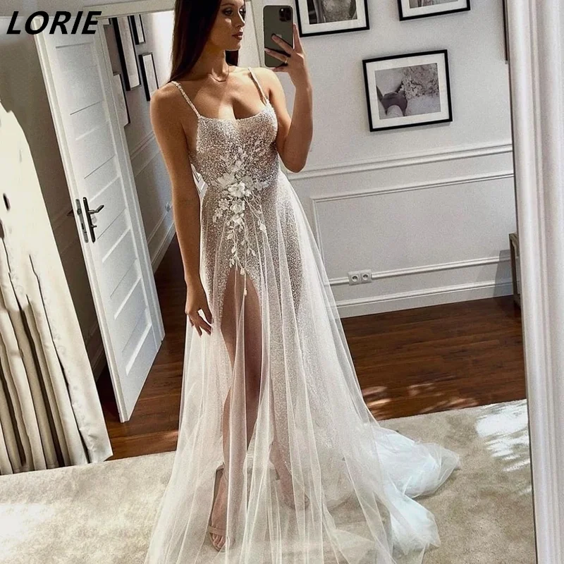 Сексуальные блестящие кружевные свадебные платья LORIE с разрезом с...