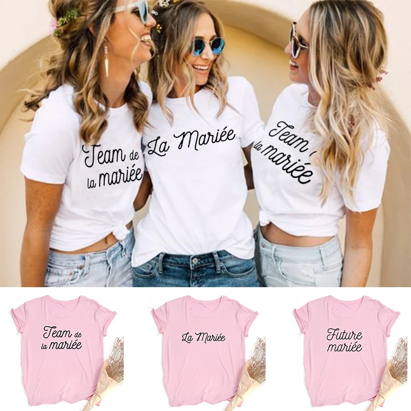Женская футболка с французским принтом La Mariee, футболка для девичвечерние и подружки невесты, одежда в стиле Харадзюку