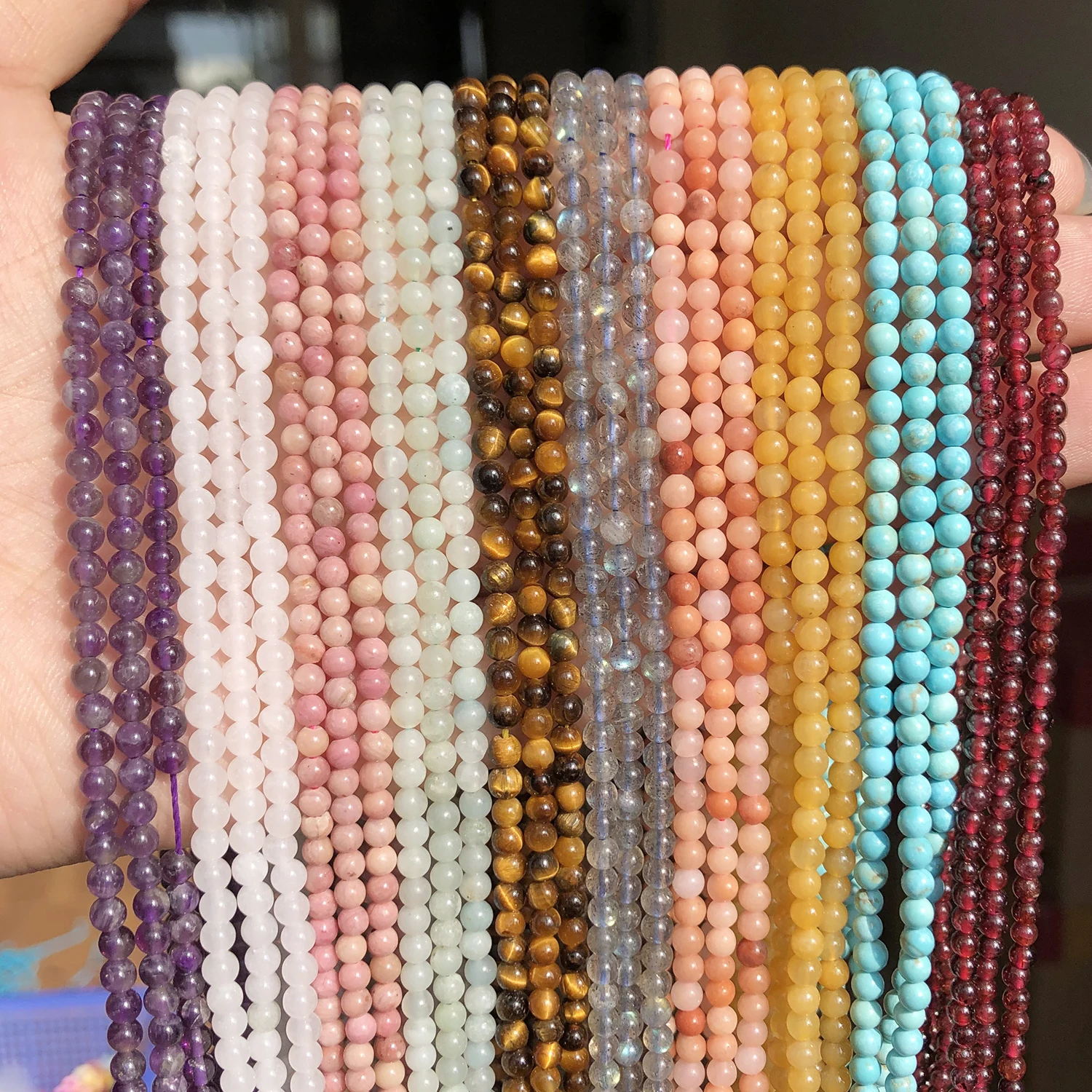 Материал:2 3 4 мм натуральные Агаты кварца бирюза Кристалл Амазонит круглые свободные каменные бусины для самостоятельного изготовления ювелирных изделий браслет серьги 15''
