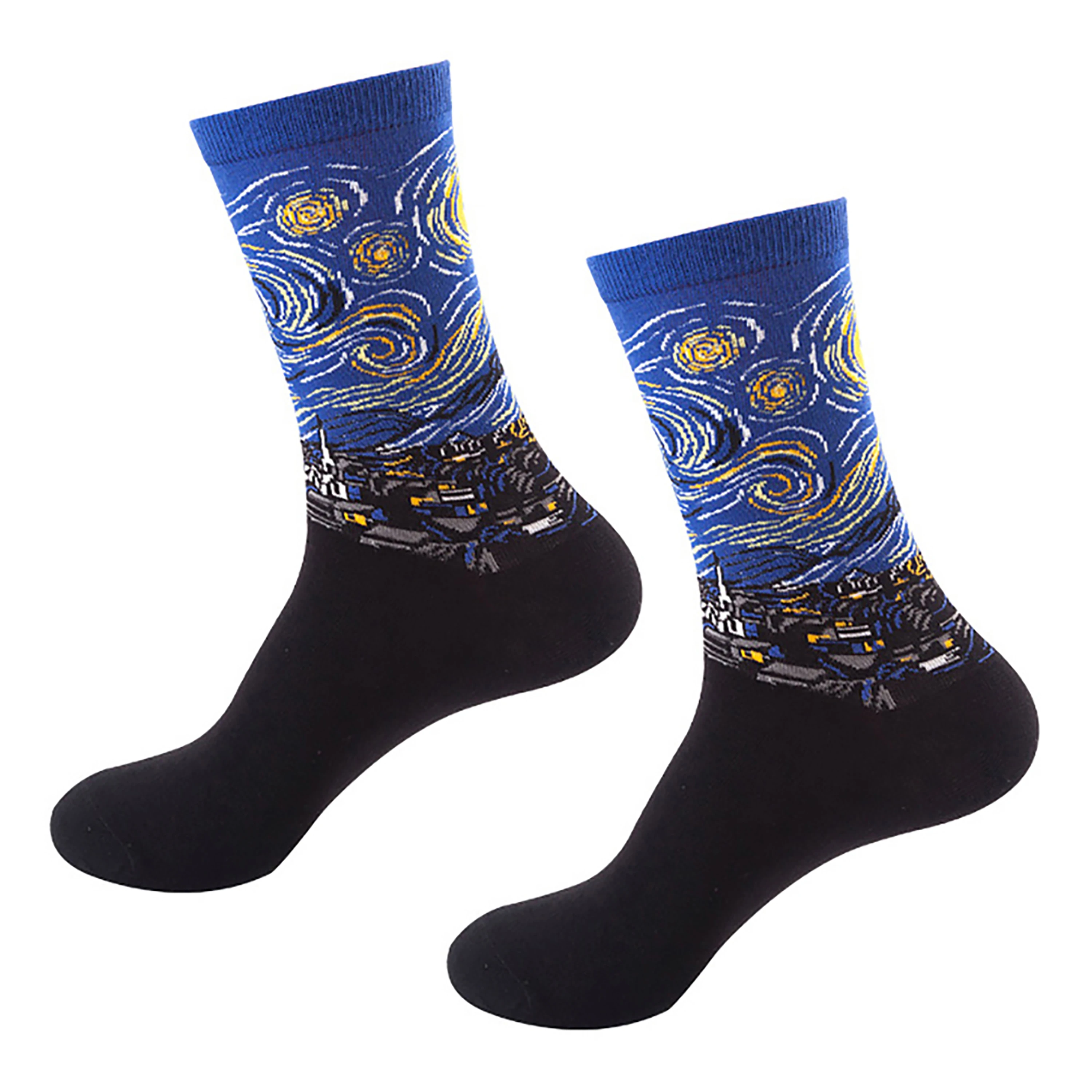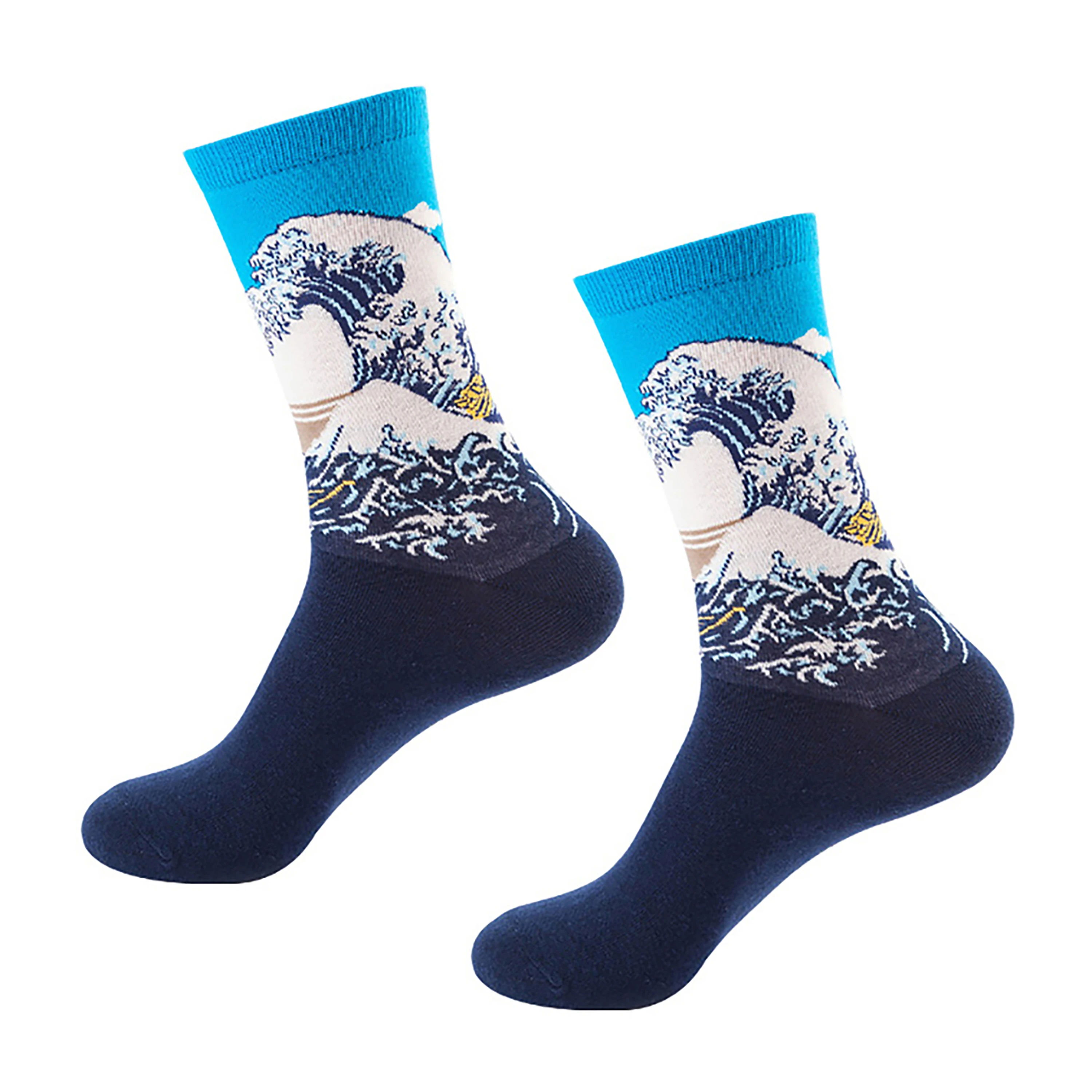Лидер продаж, классические осенне-зимние хлопковые носки для мужчин и женщин, индивидуальные носки в стиле ретро с изображением звездной ночи, масляной живописи, морских волн, Мультяшные носки