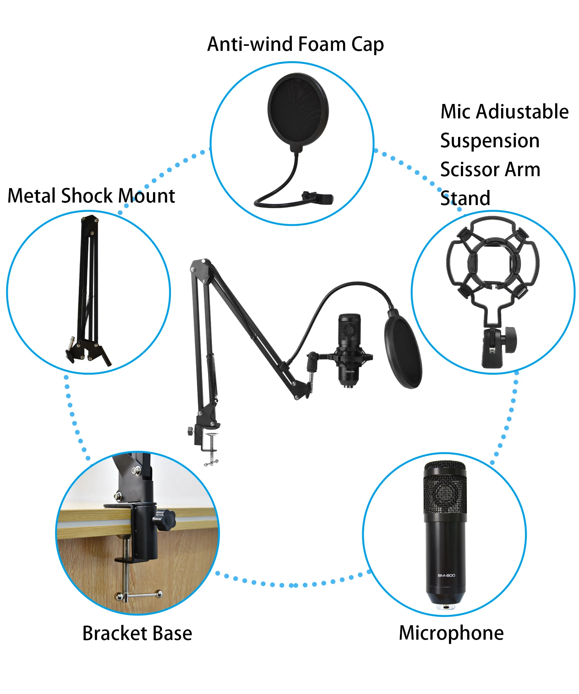 Профессиональный конденсаторный микрофон Bm 800, штатив для микрофона, набор микрофона с картой для живого звука, металлическая Противоударная подставка, Беспроводная Bluetooth