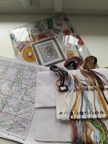 100% хлопковая нить, холст Aida, иглы, бумажная Таблица (Инструкция на английском языке, цветная печать, размер А4/страница)