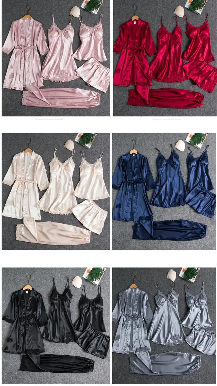 Однотонное женское платье-кимоно, соблазнительная ночная сорочка на бретельках, женский летний халат, 2 предмета, однотонный халат невесты, атласная кружевная Пижама